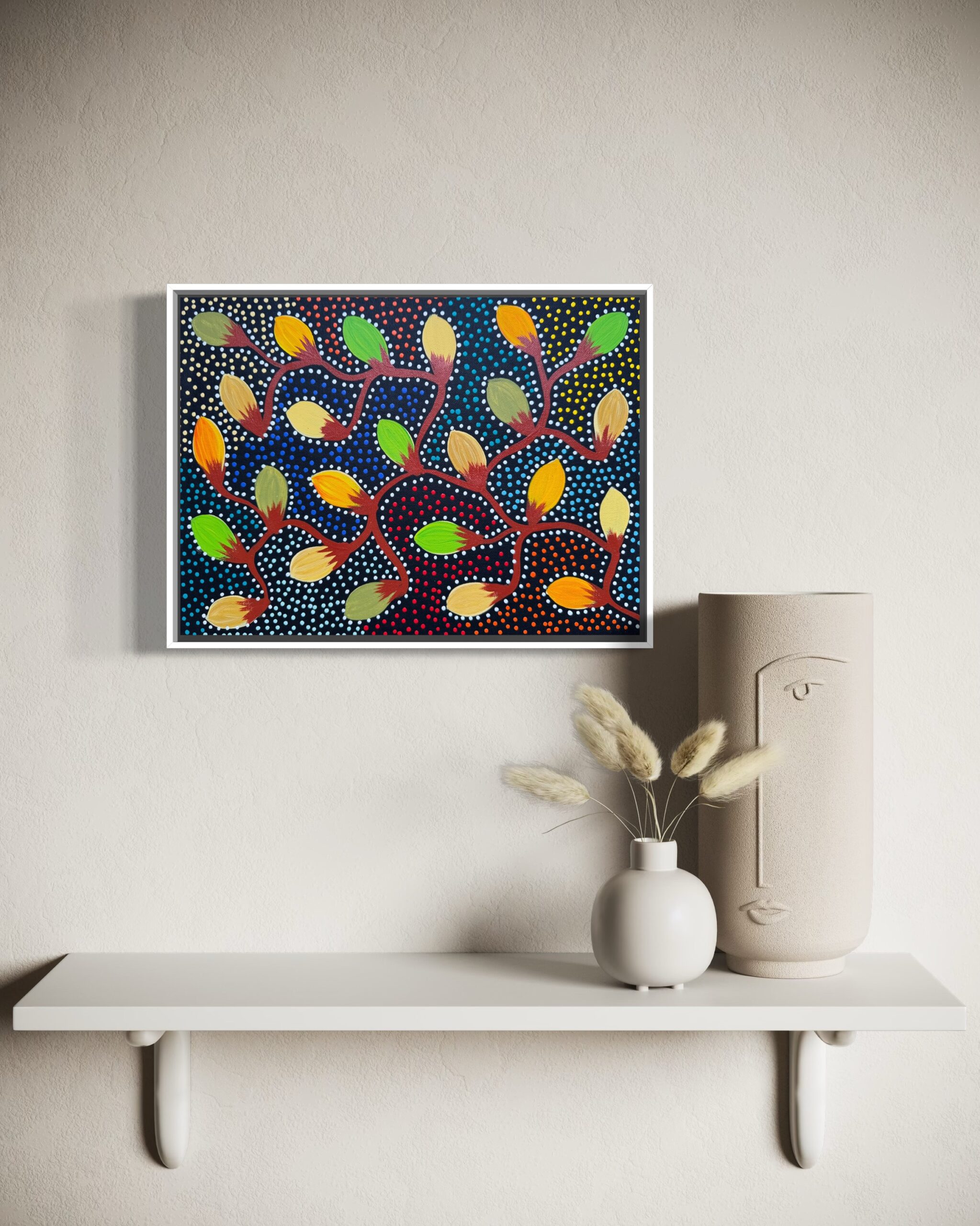 Louise is one of the renowned Numina sisters—an extraordinary family of artists whose bold, confident and vibrant works are cherished in homes across Australia and around the world. She is one of six sisters—Sharon, Selina, Caroline, Jacinta and Lanita—each celebrated in their own right as highly respected Aboriginal artists.