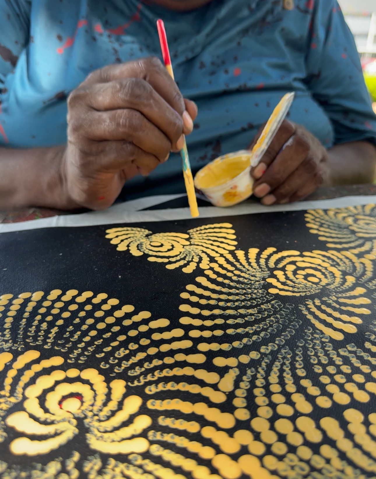 Maria Nampijinpa Brown was born in 1973 in Alice Springs, the nearest hospital to her home community of Yuendumu, located 290 km away. Growing up, she was surrounded by creativity, watching her mother, Wendy Nungarrayi Brown, and her grandparents, Paddy Japaljarri Sims and Bessie Nakamarra Sims, as they painted and shared stories rich in culture.