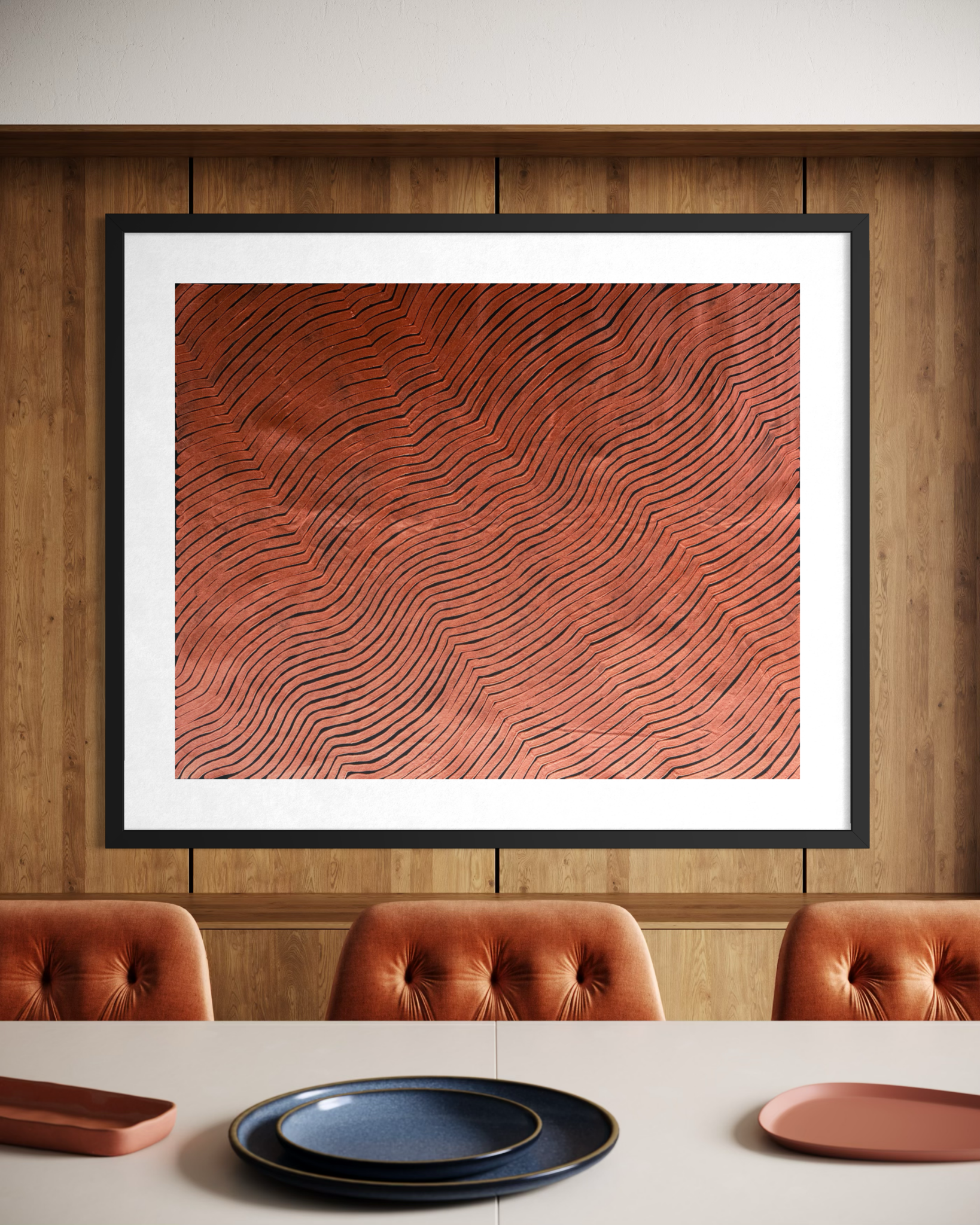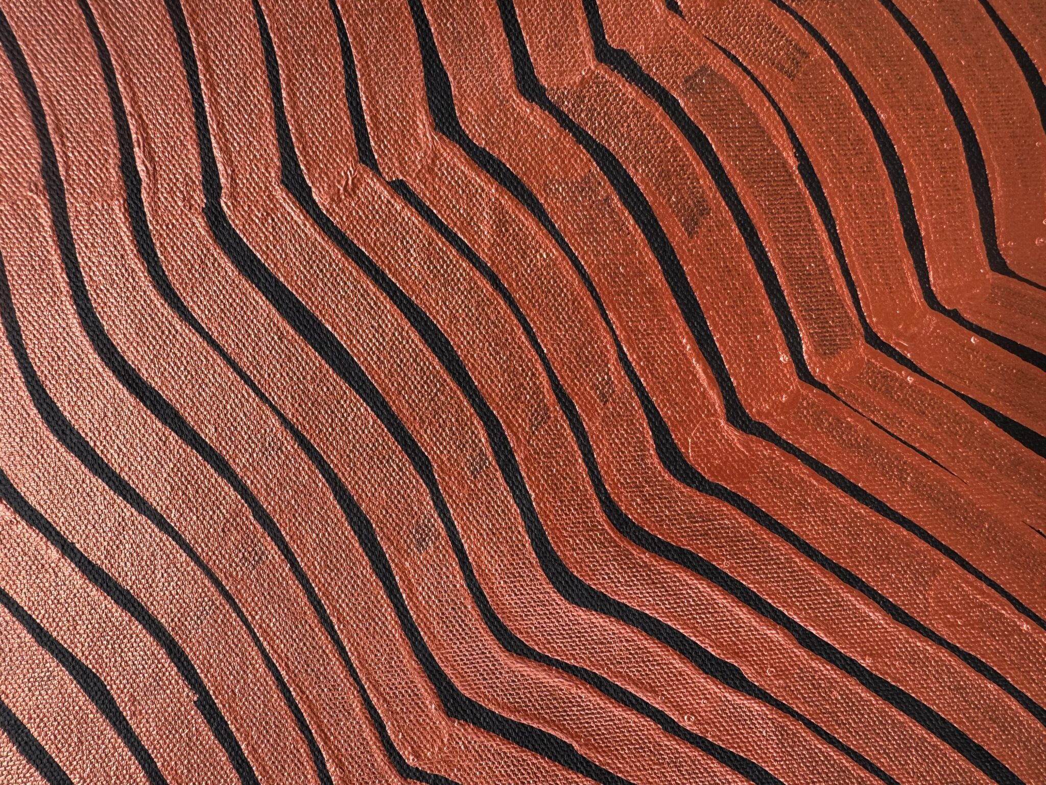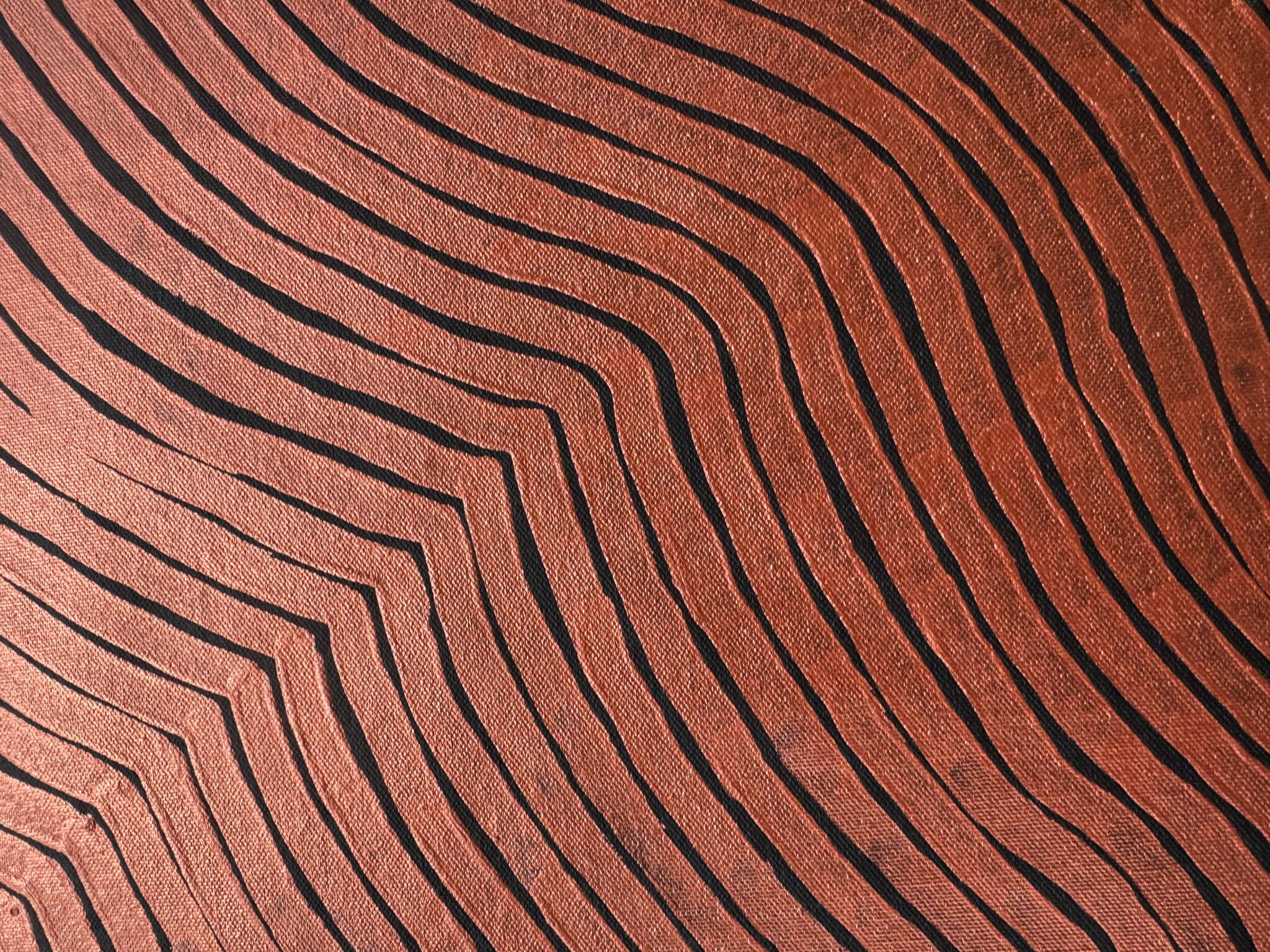 Using rhythmic patterns, flowing lines and layered dot work, Sharon represents the undulating dunes as they rise and fall across the land. These sand hills are not only physical landmarks but also hold deep cultural knowledge. They are pathways through Country, places where bush foods can be found, and where important Dreaming stories are remembered and passed down through generations.