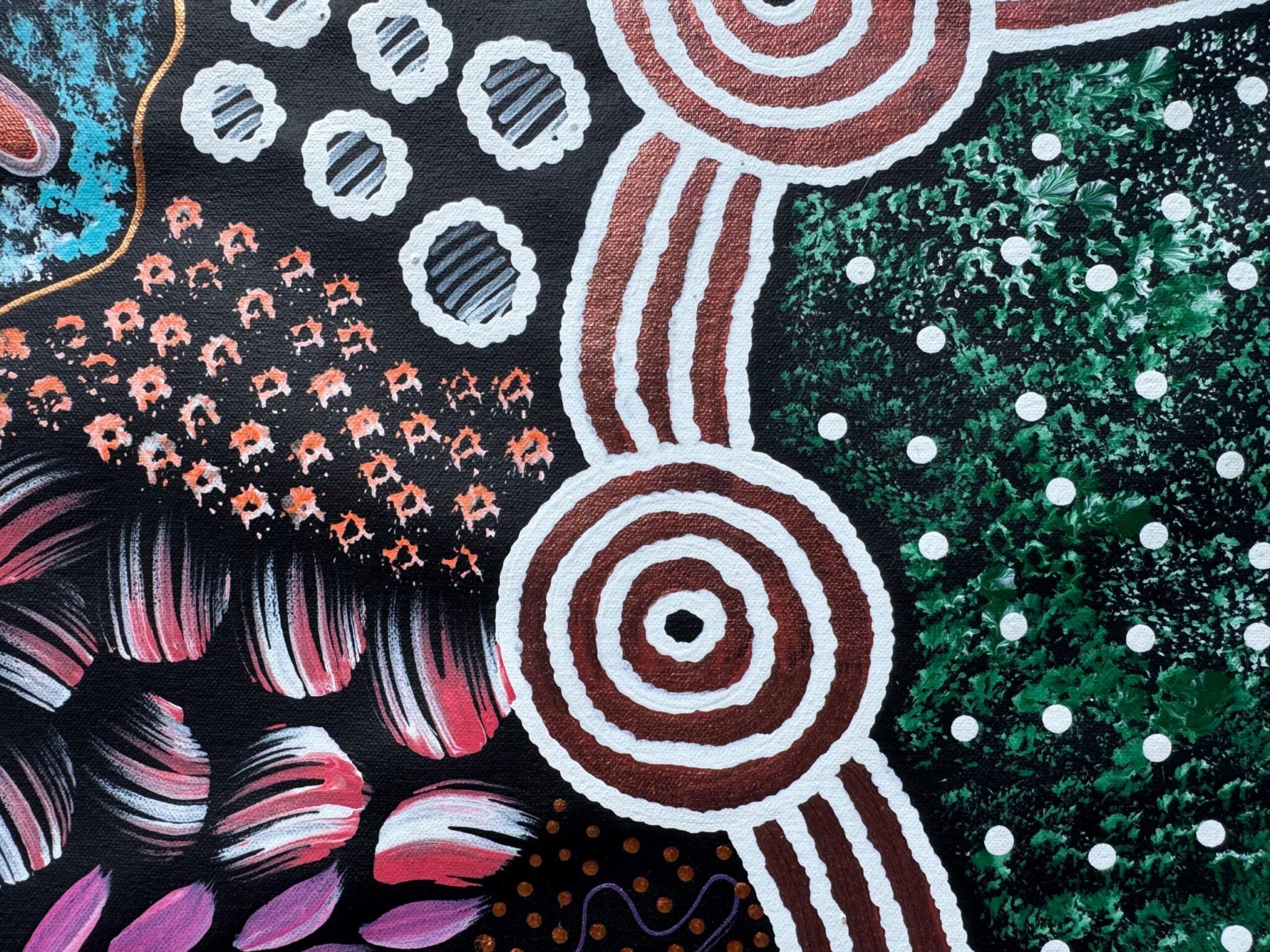Sharon Butcher Napanangka was born in Papunya in 1968 and became involved with the Papunya Tjupi Art Centre in 2010 as an artist. She was elected as a Director in 2017. Papunya Tjupi Arts is a 100% Aboriginal-owned and directed community arts organization, rooted in Papunya, the birthplace of the Western Desert dot-painting movement.