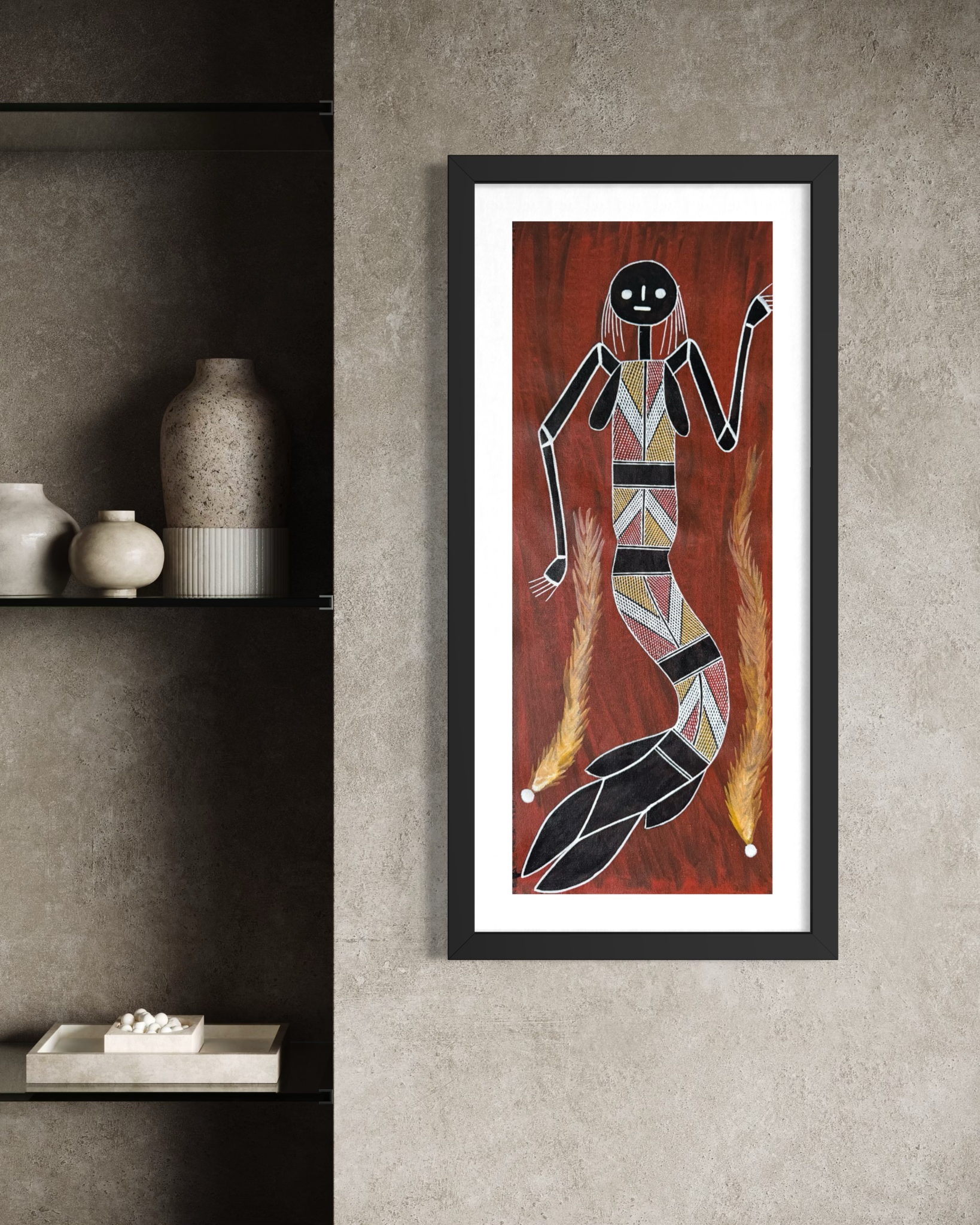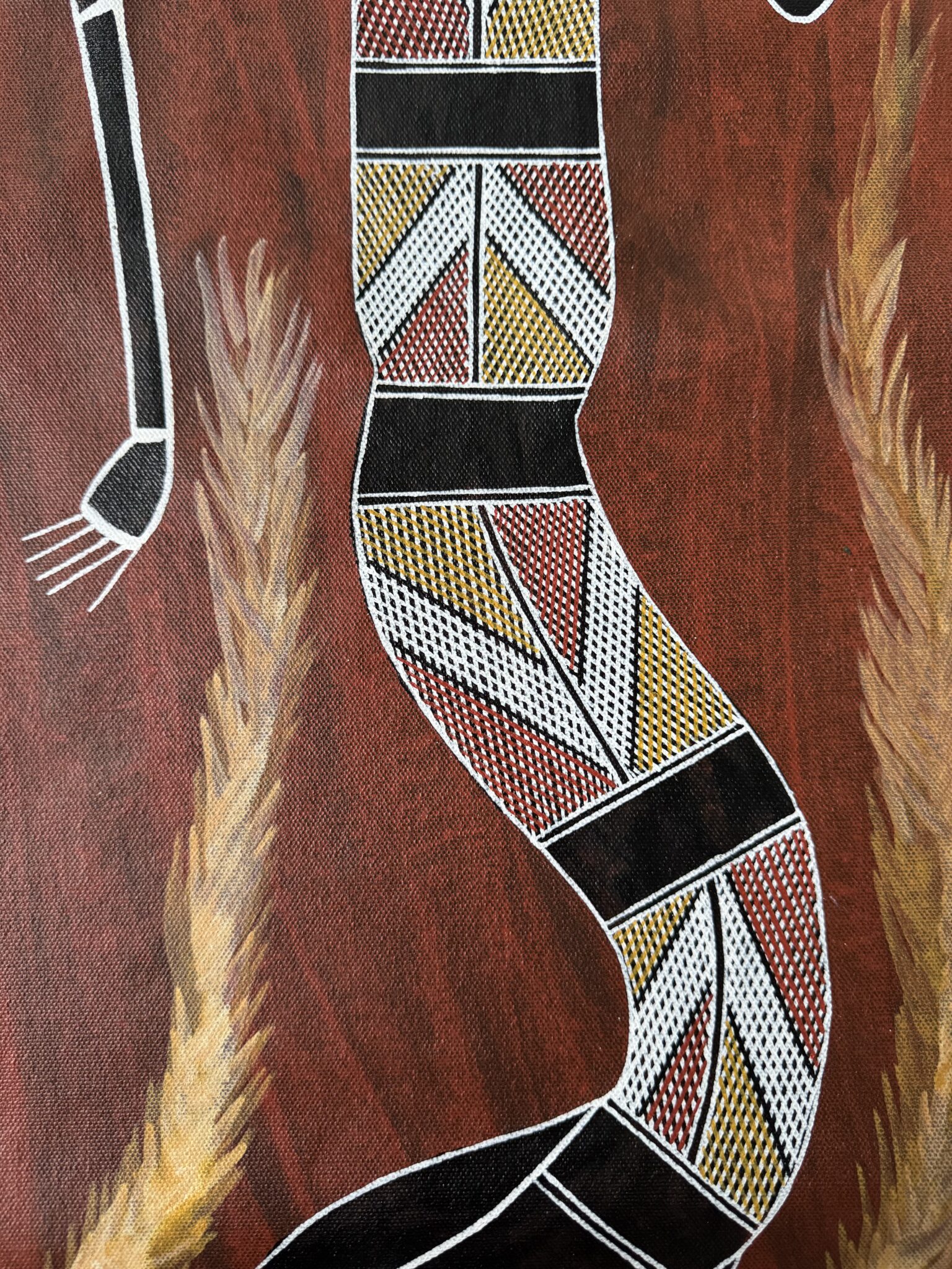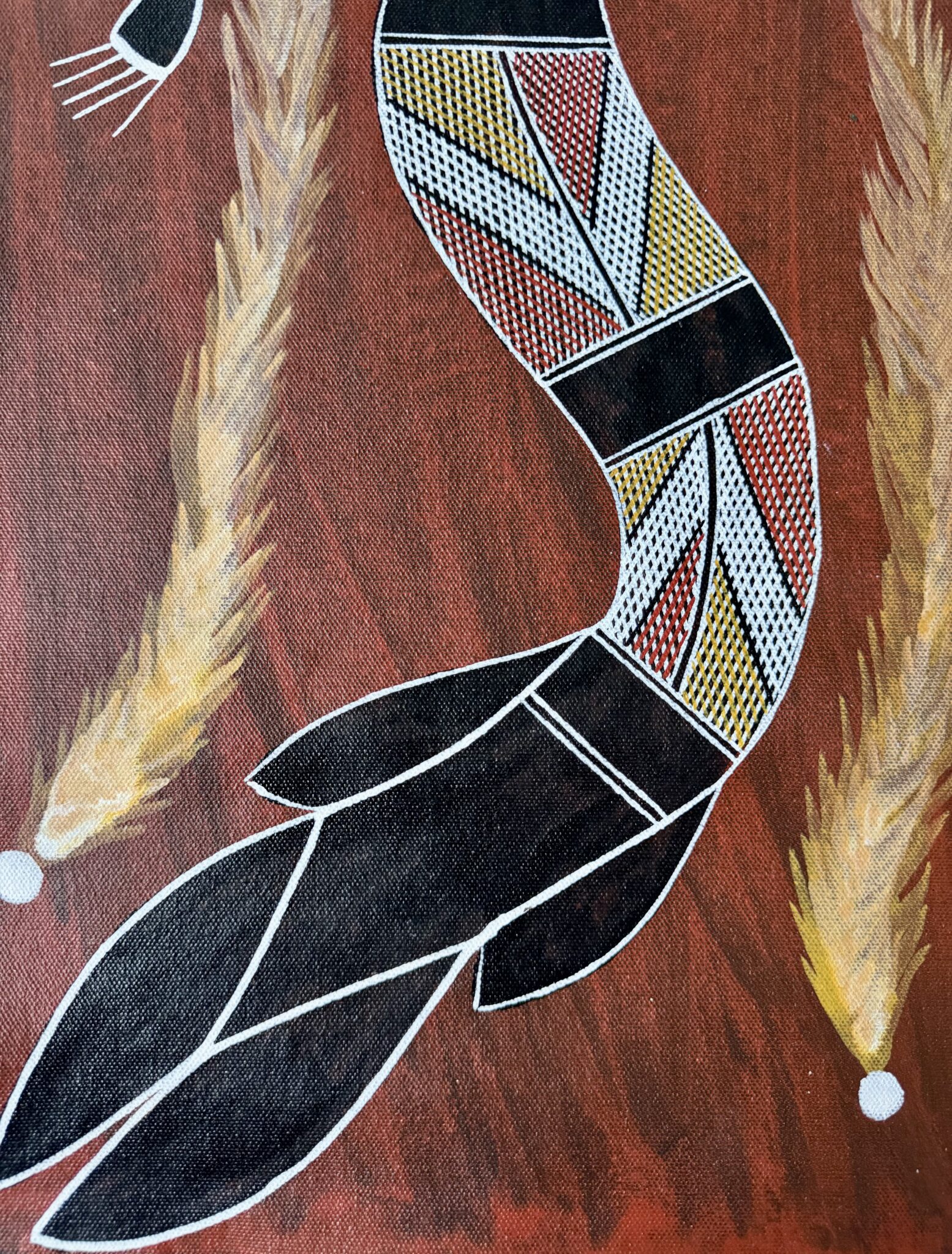 Growing up on Country, Terrence learned the significance of the land, its sacred sites, and the ancestral beings that shape the spiritual landscape of Arnhem Land. These teachings strongly influence his art, which often reflects the stories, animals, and spiritual elements that are central to his culture. Through painting, Terrence shares knowledge of Country and the deep relationship between people, land, and spirit that has existed for thousands of years.